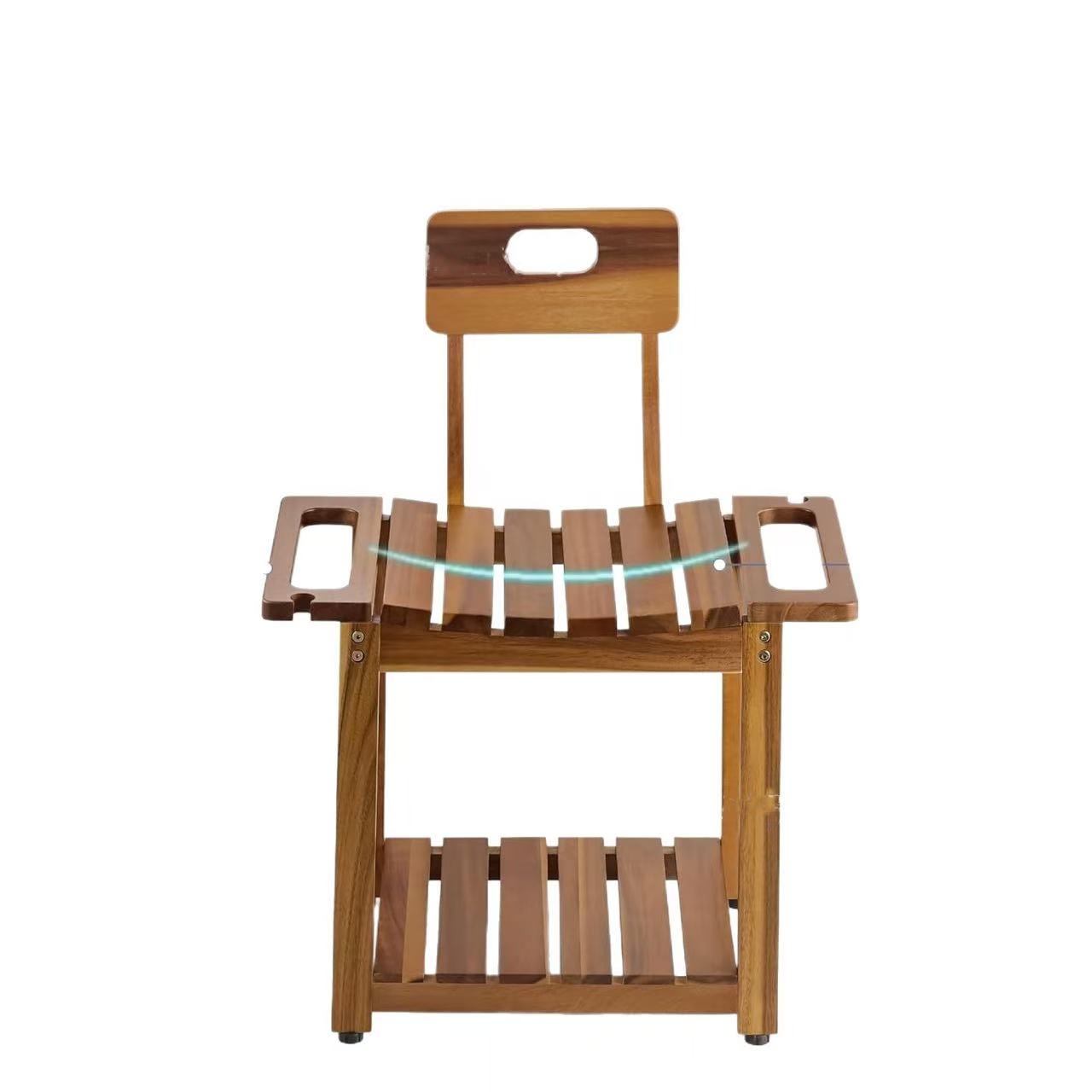 Wooden shower chair with armrests, double-layer storage stool, shoe bench